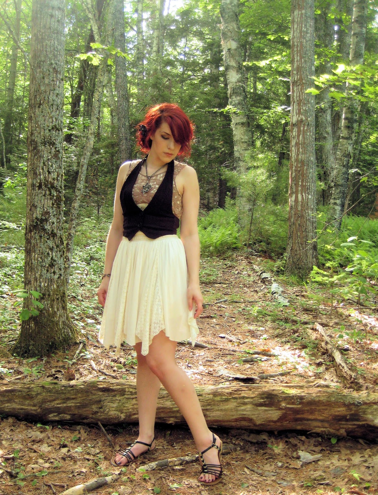 When I edit my photos I adjust color, sharpness, and brightness. From time to time I've covered up blemishes. When I was editing these pictures I noticed the bruises on my legs, which I always have. But I decided to leave them be. My bruises are part of my character, I bruise easily. Plus, might it not be that woodland fairies have some war marks to boast of? I definitely think so.